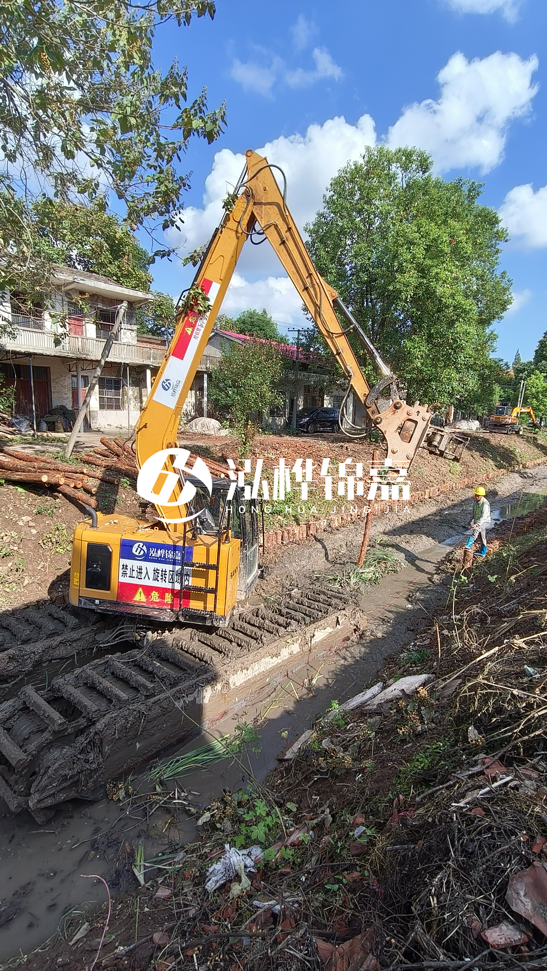 通化挖機打木樁專業施工-水挖機河道清淤如何打木樁?